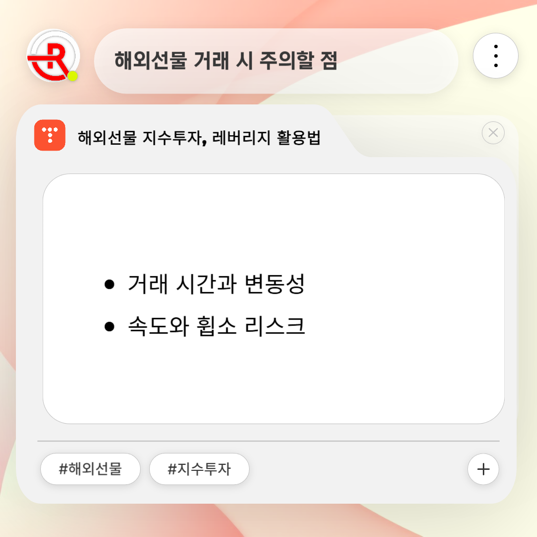 거래 시간과 변동성: 해외선물은 24시간 거래가 가능하지만, 글로벌 경제 지표 발표나 뉴스에 따라 급격한 변동성이 발생할 수 있습니다.