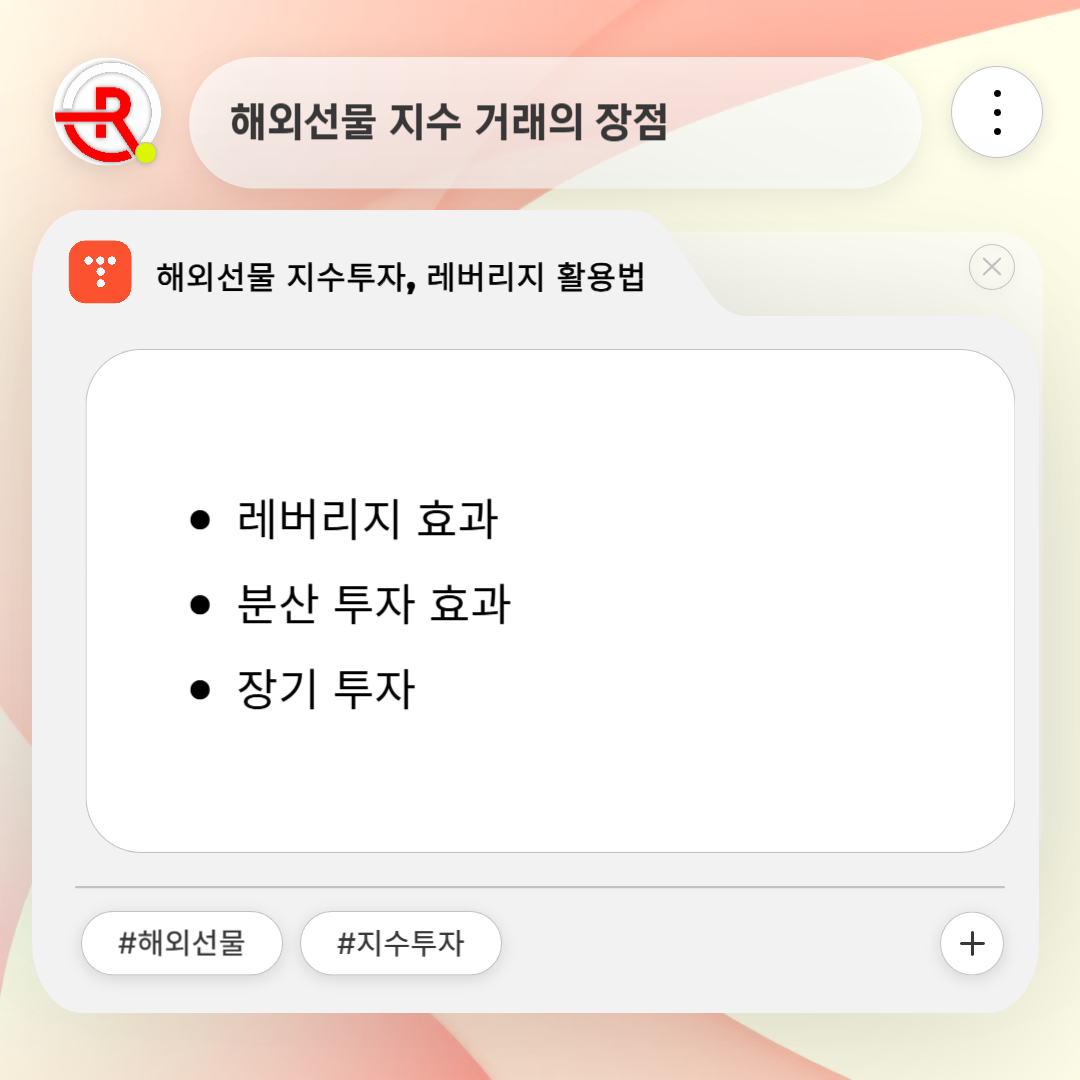 레버리지 효과를 통해 소액 투자로 큰 수익을 얻을 수 있으며, 분산 투자를 통해 리스크를 관리할 수 있습니다. 예를 들어, S&P 500 선물 계약을 통해 500개 기업에 분산 투자하는 효과를 얻을 수 있습니다.