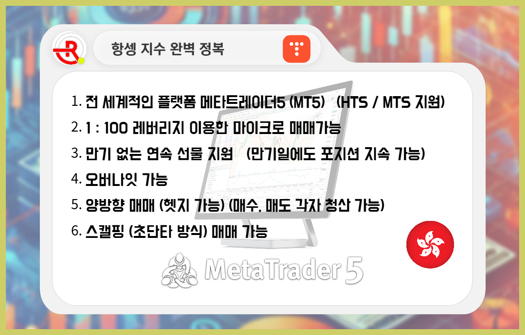 이번 글에서는 항셍 지수를 중심으로 투자 전략을 새롭게 구성하는 방법, 해외선물 투자 시 유의할 점, 그리고 메타트레이더5의 실전 활용법까지 실질적인 정보를 정리해보겠습니다.