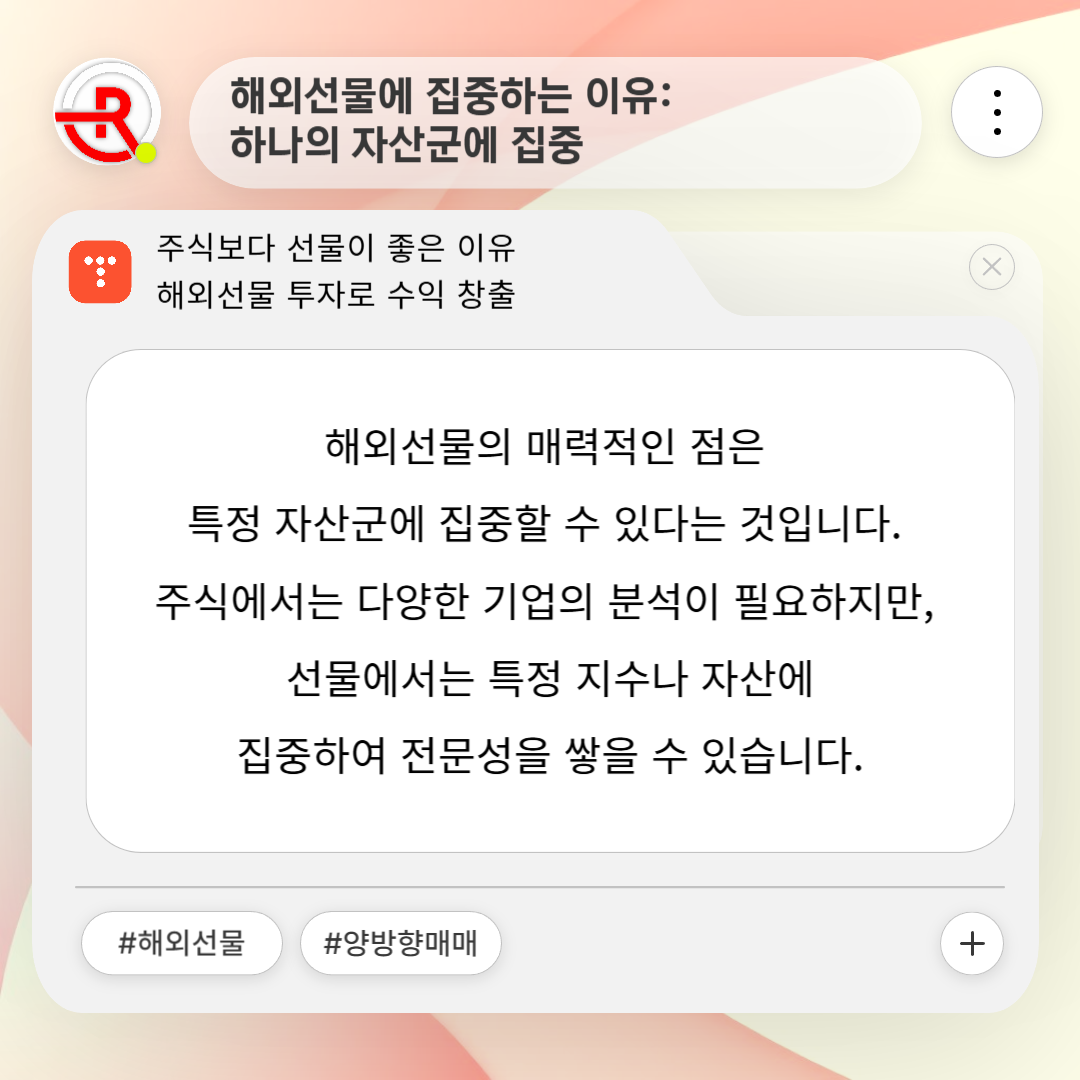 주식에서는 다양한 기업의 분석이 필요하지만, 선물에서는 특정 지수나 자산에 집중하여 전문성을 쌓을 수 있습니다.