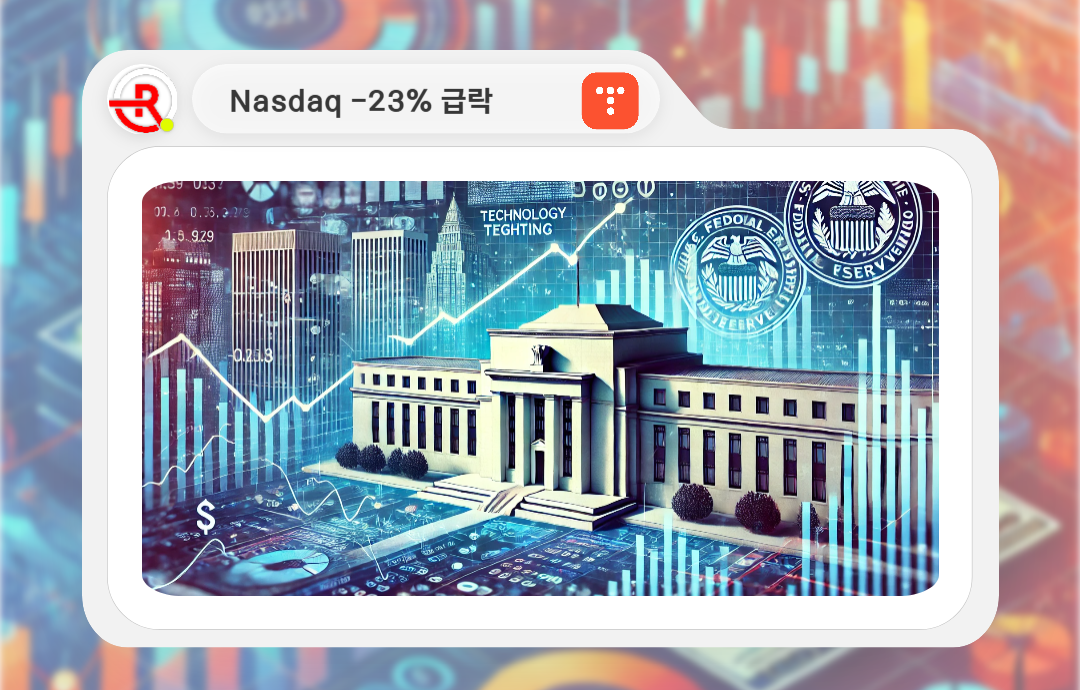 나스닥 지수 변화 | -23% 하락 | 약세장 기준 초과, 장기 하락 전환 가능성 |