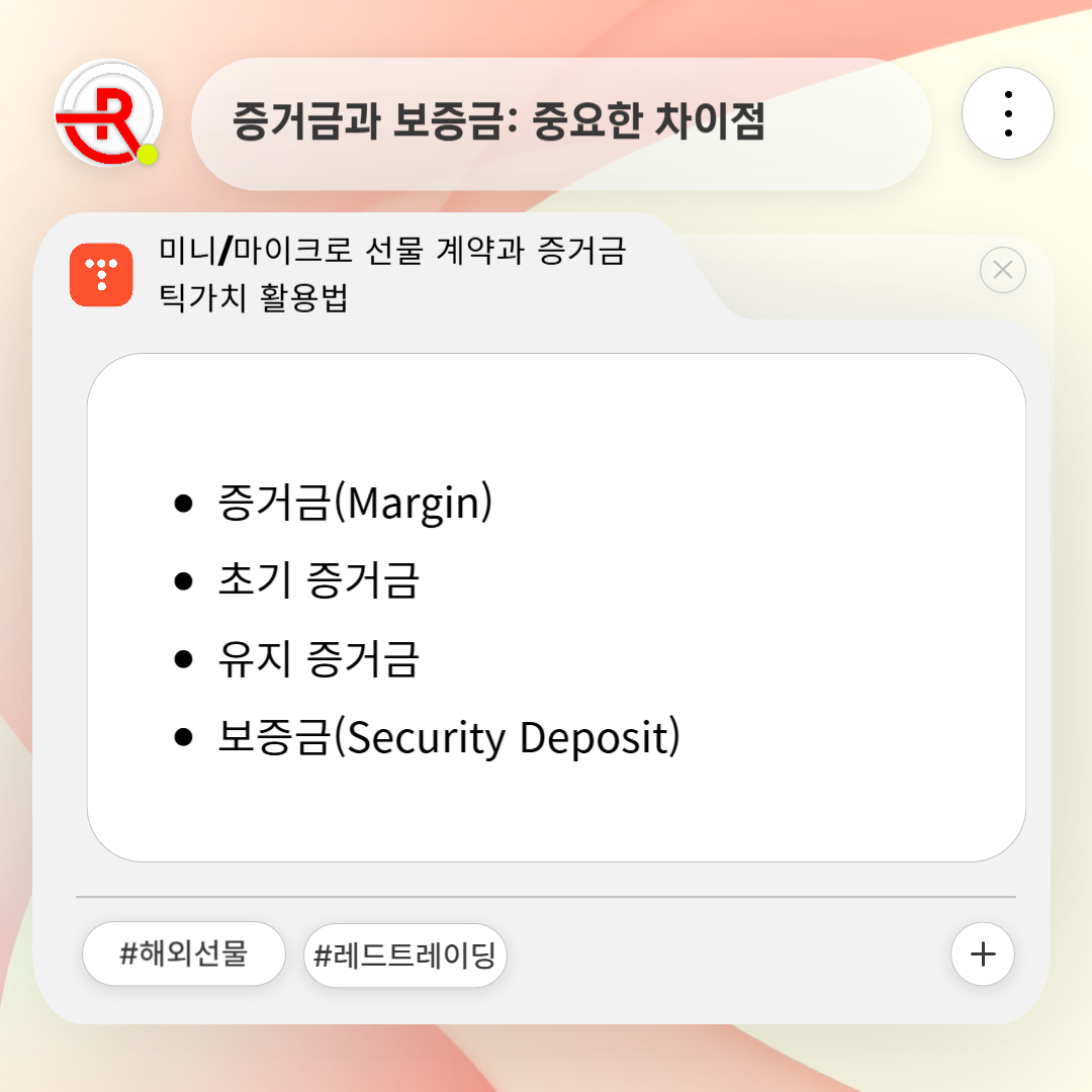 선물 거래에서 증거금과 보증금은 모두 자금 관련 용어지만, 각기 다른 개념을 의미합니다.