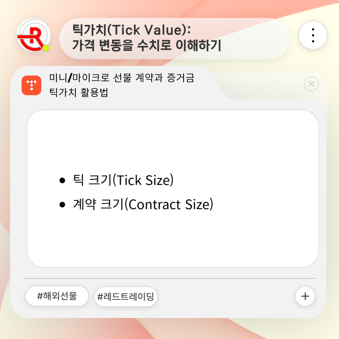 계약 크기(Contract Size): 선물 계약의 단위로, 각 계약의 크기에 따라 틱가치가 달라집니다.