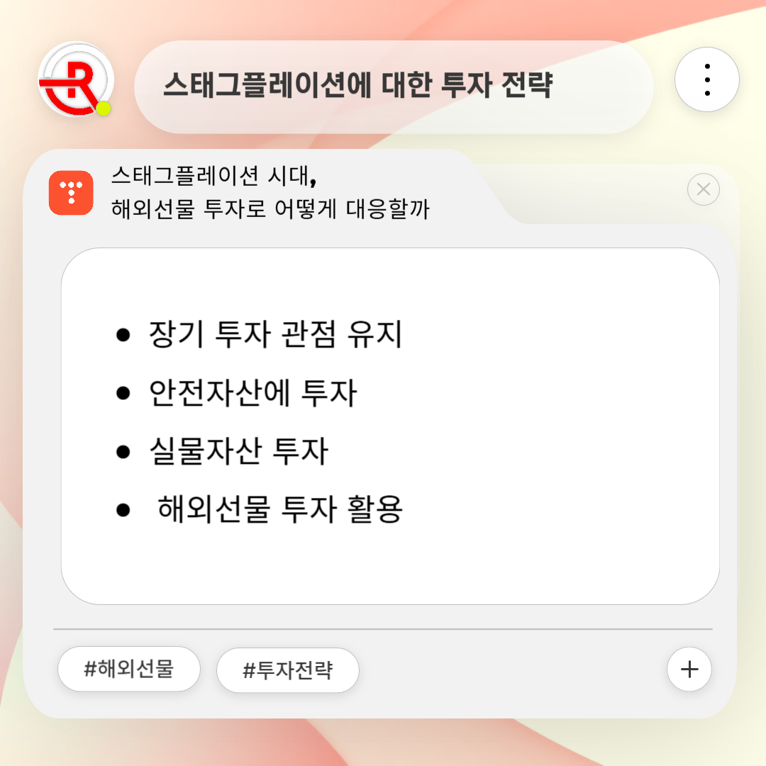 해외선물은 레버리지를 활용하여 작은 자본으로 큰 포지션을 취할 수 있습니다. 다양한 자산군에 투자할 수 있어 다각화가 가능하며, 글로벌 경제 변동성에 민감하게 반응할 수 있습니다. 특히 원유, 금, 농산물, 주식 지수 등 여러 자산에 투자할 수 있기 때문에 스태그플레이션 환경에서 유용한 전략이 될 수 있습니다.