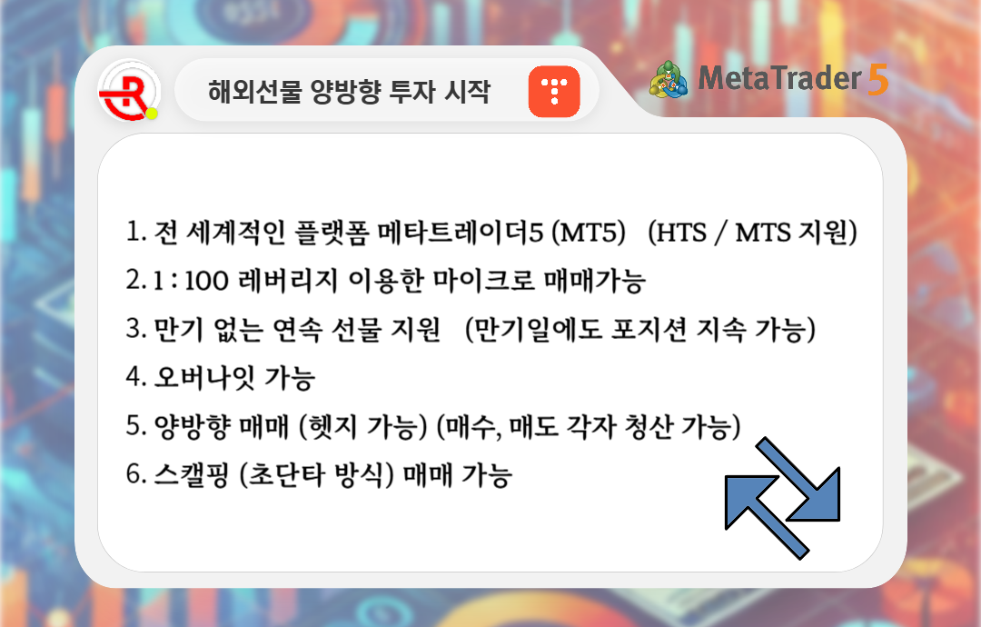 선물거래의 가장 큰 매력은 레버리지입니다. 이는 적은 자본으로도 큰 규모의 거래를 가능하게 해주는데요, 예를 들어 원자재, 지수, 통화 등의 상품을 레버리지로 운용하면 자금 효율을 극대화할 수 있습니다.