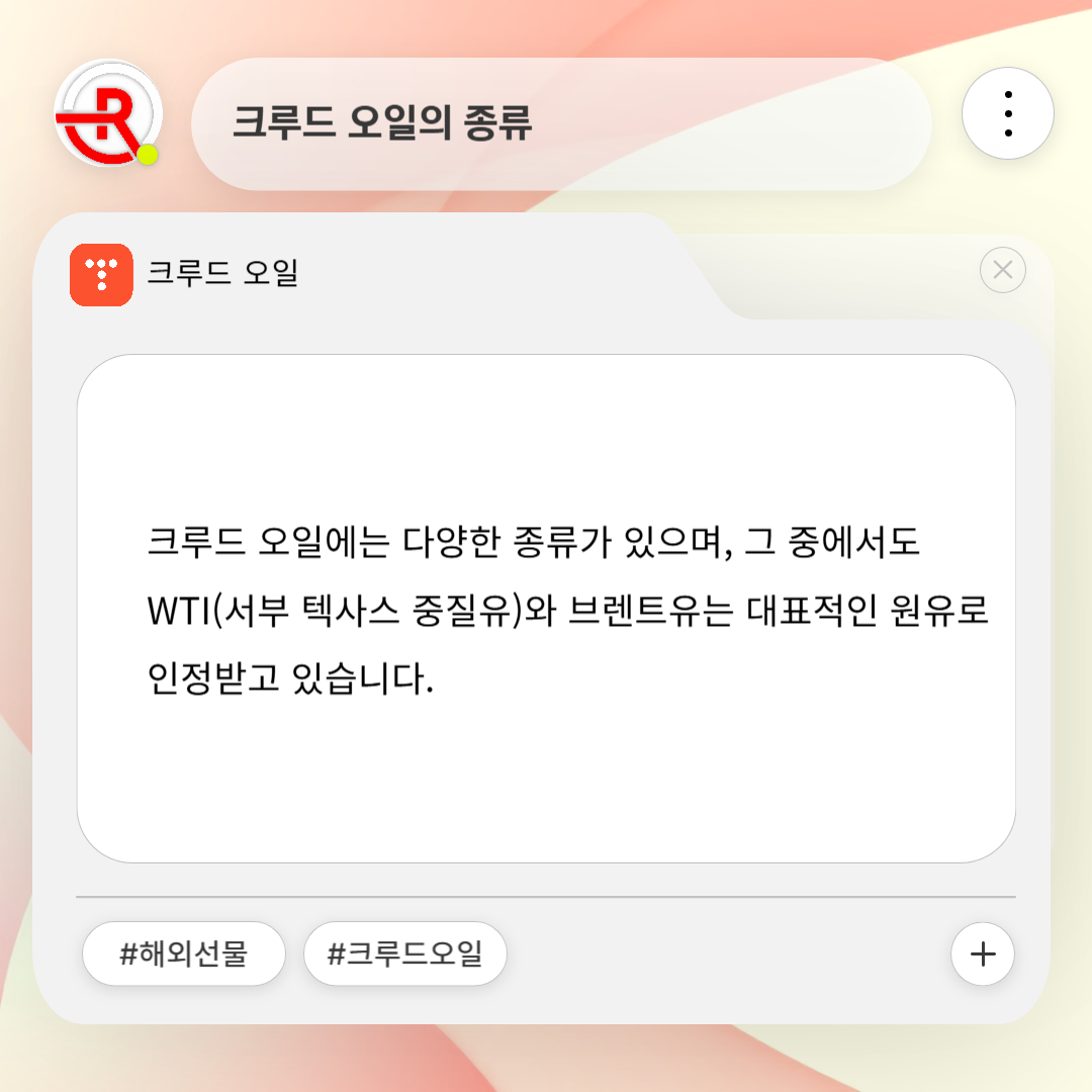 크루드 오일에는 다양한 종류가 있으며, 그중에서도 WIT(서부 텍사스 중질유)와 브렌트유는 대표적인 원유로 인정받고 있습니다. WTI는 주로 미국에서 채굴되고, 브렌트유는 대표적인 원유로 인정받고 있습니다. WTI는 주로 미국에서 채굴되고, 브렌트유는 북해에서 추출됩니다. 이 두 가지 원유는 국제 거래에서 중요한 기준이 되며, 그 외에도 두바이 원유와 아바리아 라이트 원유 등이 중요한 역할을 합니다.