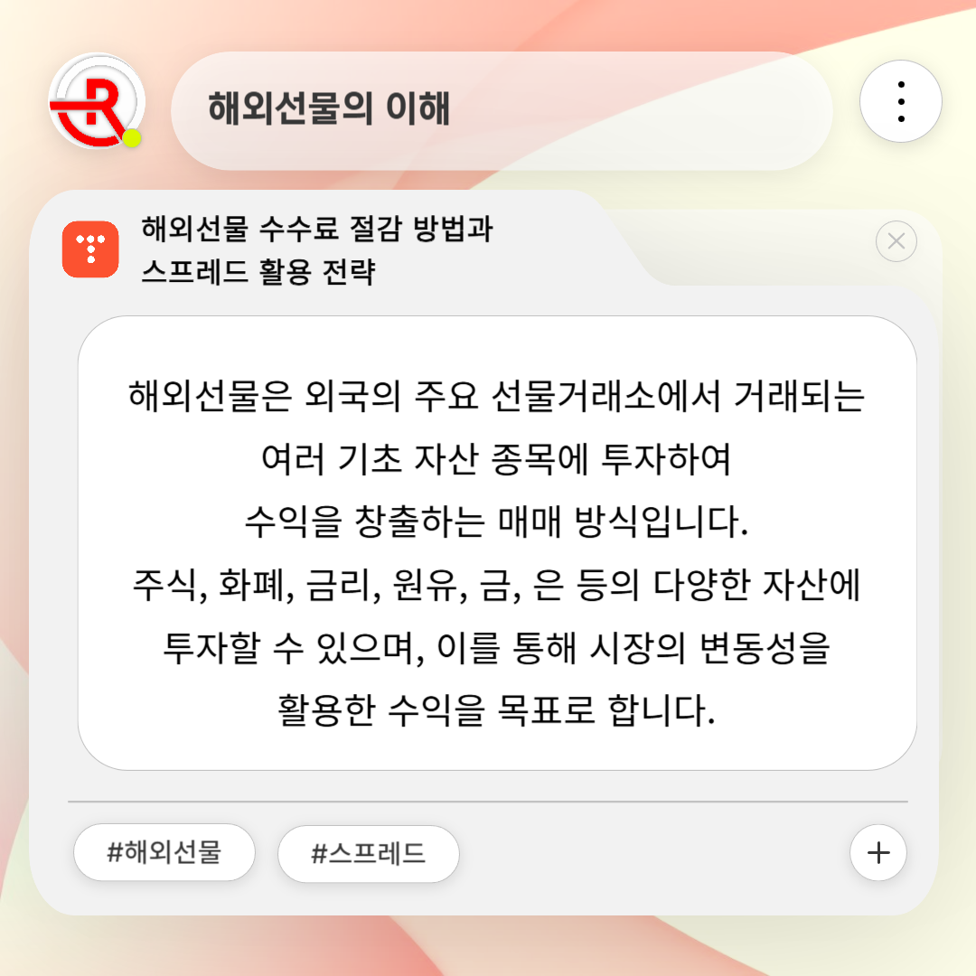 해외선물은 외국의 주요 선물거래소에서 거래되는 여러 기초 자산 종목에 투자하여 수익을 창출하는 매매 방식입니다. 주식, 화폐, 금리, 원유, 금, 은 등의 다양한 자산에 투자할 수 있으며, 이를 통해 시장의 변동성을 활용한 수익을 목표로 합니다. 중요한 점은, 주식 거래와는 달리 선물 거래는 만기일에 맞춰 인수와 인도가 이루어지는 거래라는 것입니다. 이를 통해 투자자는 매매 시점을 미리 정해놓고 거래를 진행하게 됩니다.