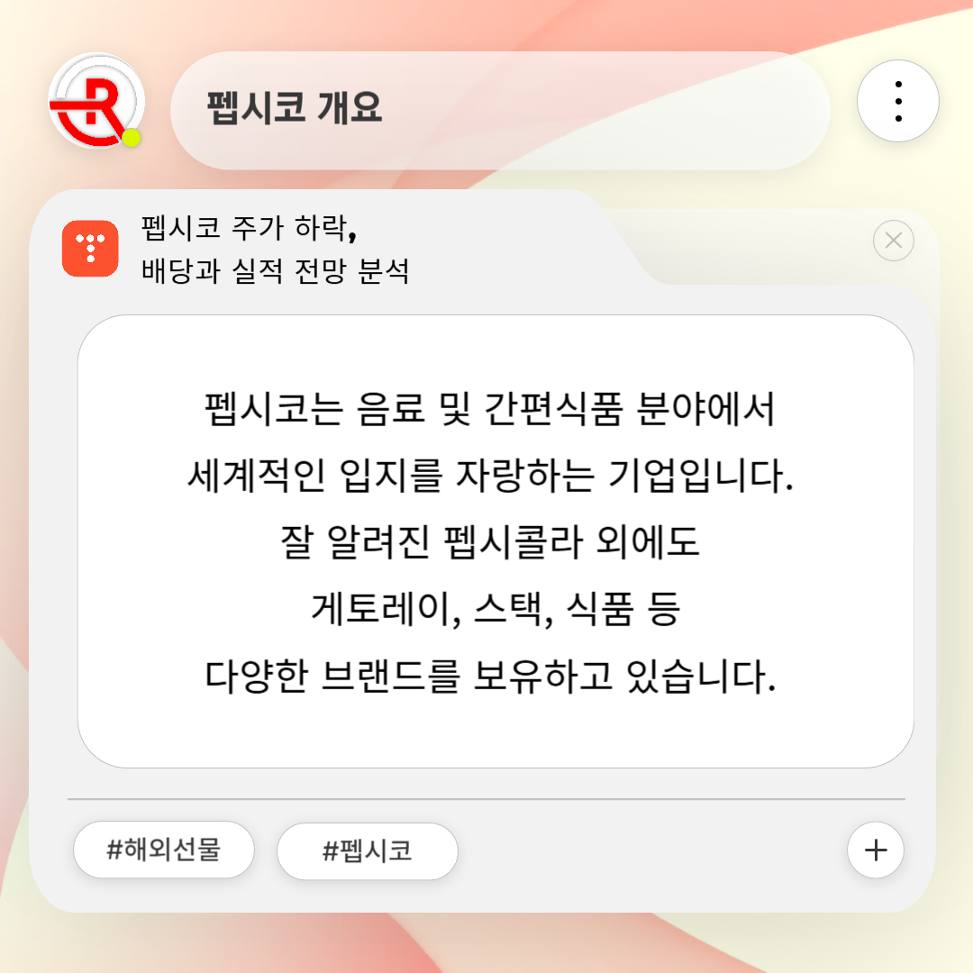 세계적인 음료 및 간편식품 기업인 펩시코(PepsiCo)가 2025년 1분기 실적을 발표하면서 주가가 예상보다 부진한 모습을 보였습니다. 오늘은 펩시코의 최근 실적 발표와 그에 따른 주가 전망에 대해 다뤄보겠습니다. 펩시코는 여전히 세계적인 소비재 기업으로, 주식 투자자들에게 중요한 기업 중 하나인데요, 과연 이번 실적이 펩시코 주가에 어떤 영향을 미쳤는지 분석해 보겠습니다.
