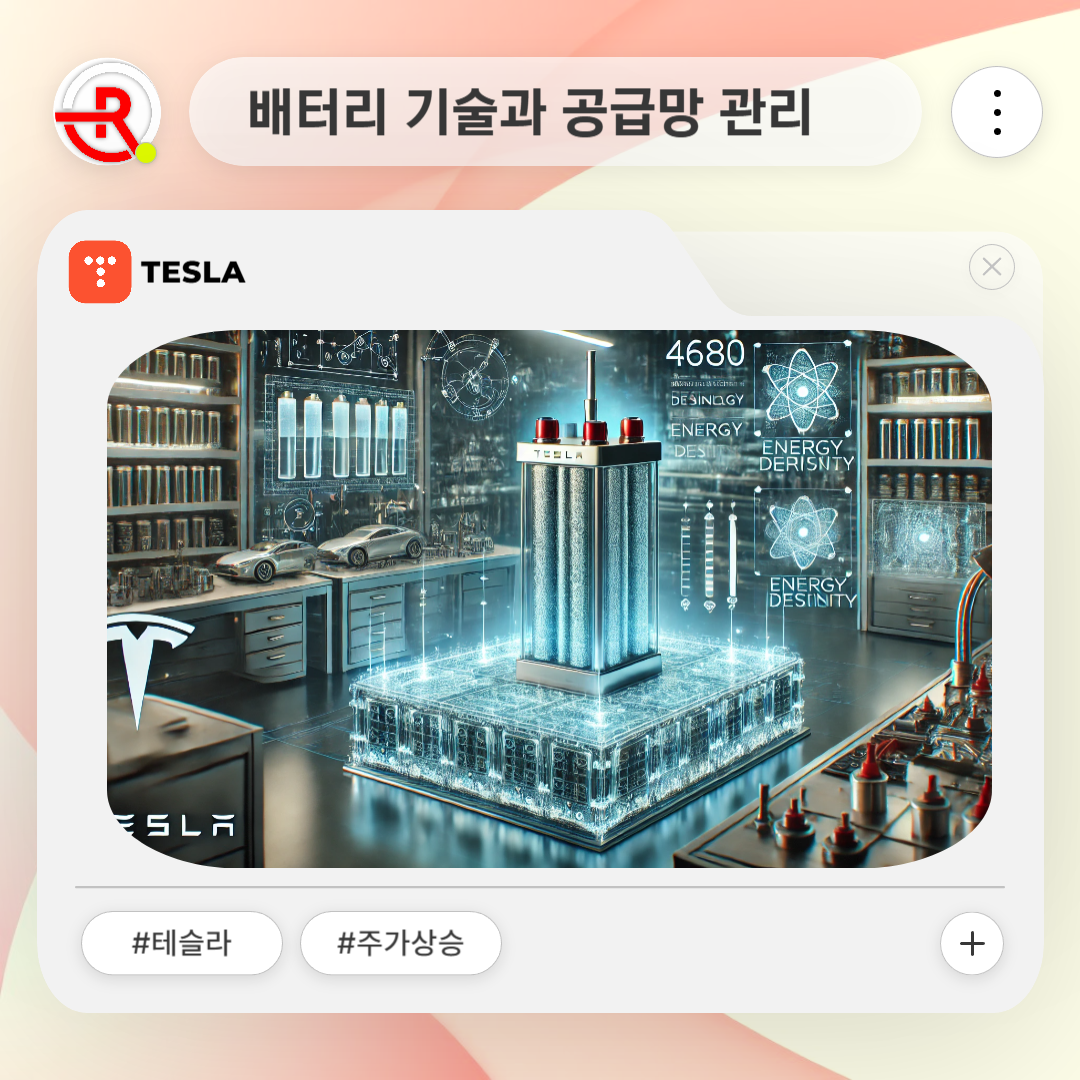 테슬라는 4680 배터리 셀 개발을 통해 에너지 밀도를 개선하고 생산 비용을 절감하며, 전기차 주행거리를 늘리는 데 성공했씁니다. 동시에, 리튬과 니켈과 같은 핵심 원자재의 안정적 공급을 위해 장기 계약 체결 및 자체 채굴 프로젝트를 진행하며 공급망 안정성을 강화하고 있습니다.