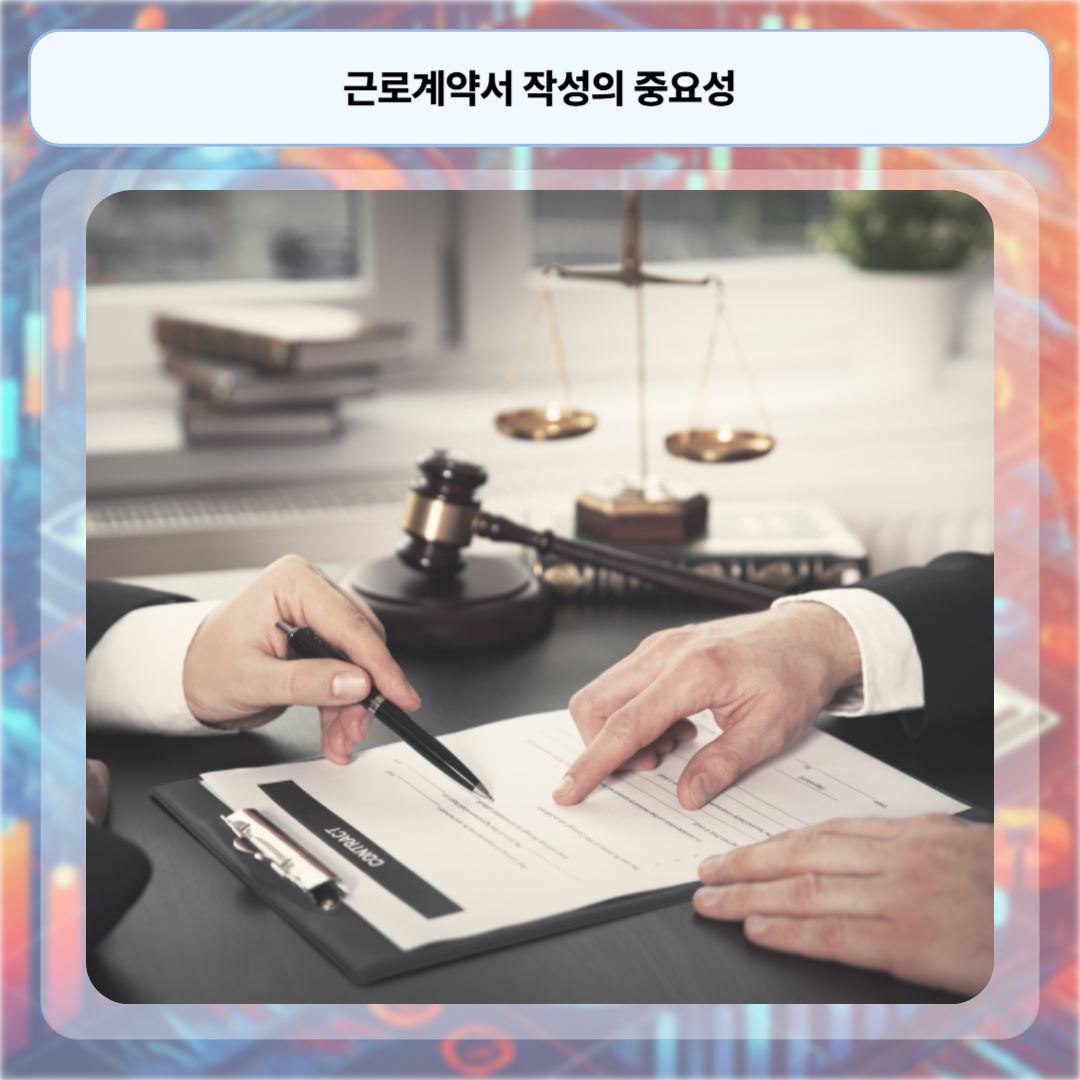 근로계약서는 근로자와 고용주 간의 약속을 명확히 문서로 남긴 것입니다. 근로시간, 임금, 휴게시간, 연차휴가, 해고 절차 등 모든 조건이 포함되어야 합니다. 근로계약서 없이 근로를 시작하면 추후 분쟁 시 증거가 부족해 불리할 수 있습니다. 사본을 보관하고 이해되지 않는 내용은 꼭 확인해야 합니다.