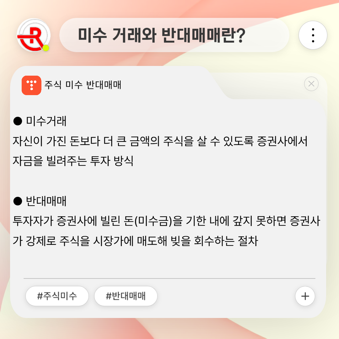 주식 시장에서 "미수 반대매매"라는 용어를 들어보셨나요? 처음 접할 땐 다소 어렵게 느껴질 수 있지만, 투자자라면 반드시 알아야 할 중요한 개념입니다. 이 글에서는 미수 반대매매의 기본적인 원리부터 이를 예방하기 위한 구체적은 방법까지 친근하고 쉽게 풀어보겠습니다.