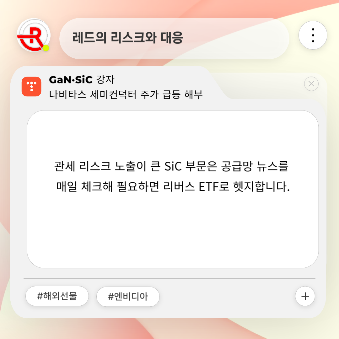 내부자 매도 13건, 매수 0건은 심리적 부담을 줍니다. 매출 변동성도 큽니다. 저는 뉴스 한두 줄에 흔들리지 않기 위해 베타 2.2 이상 종목은 손실 한도를 포지션당 1%로 고정합니다. 또한 관세 리스크 노출이 큰 SiC 부문은 공급망 뉴스를 매일 체크해 필요하면 리버스 ETF로 헷지합니다.