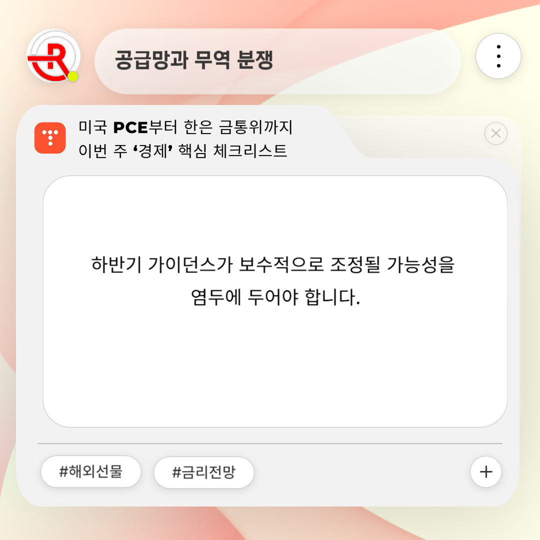 반도체 장비 수출 규제, 해상 운임 상승이 제조업 마진을 압박하고 있습니다. 애널리스트 시절 경험으로 보면 원자재 가격 스파이크는 대체로 6개월 후 기업 실적에 반영되었습니다. 이번에도 하반기 가이던스가 보수적으로 조정될 가능성을 염두에 두어야 합니다.