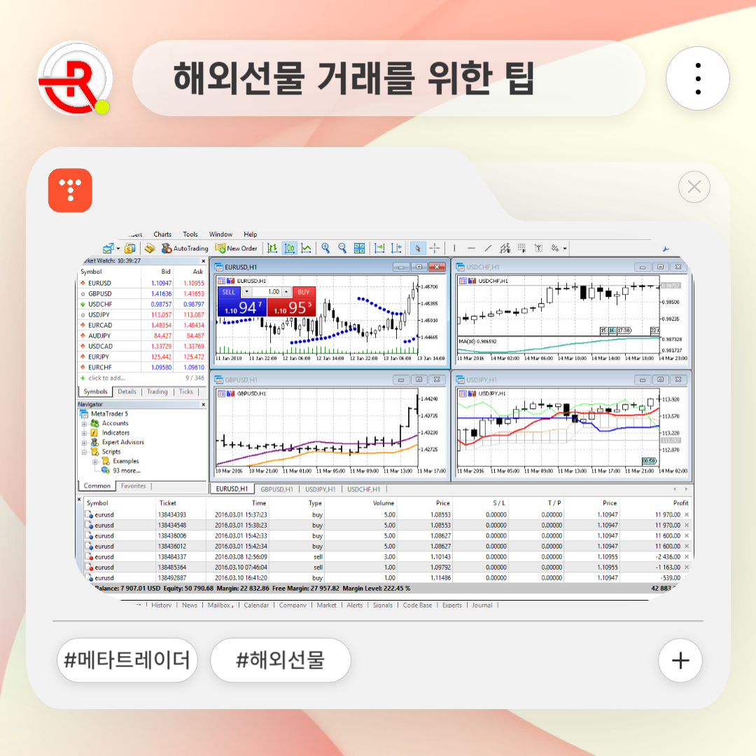 메타트레이더 5는 해외선물 거래를 효과적으로 관리할 수 있는 다양한 장점을 제공합니다.