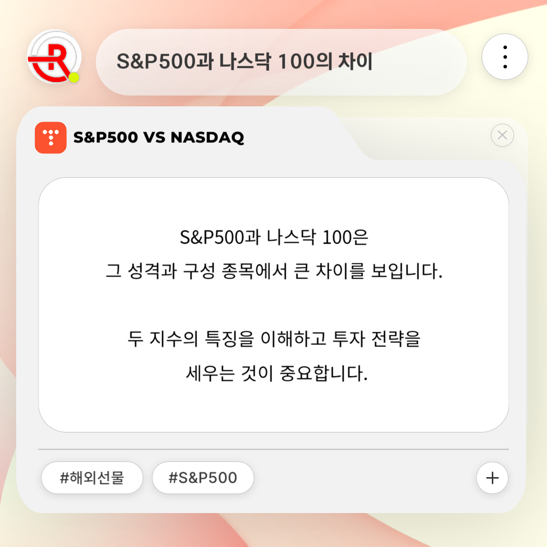 S&P500과 나스닥 100은 그 성격과 구성 종목에서 큰 차이를 보입니다.