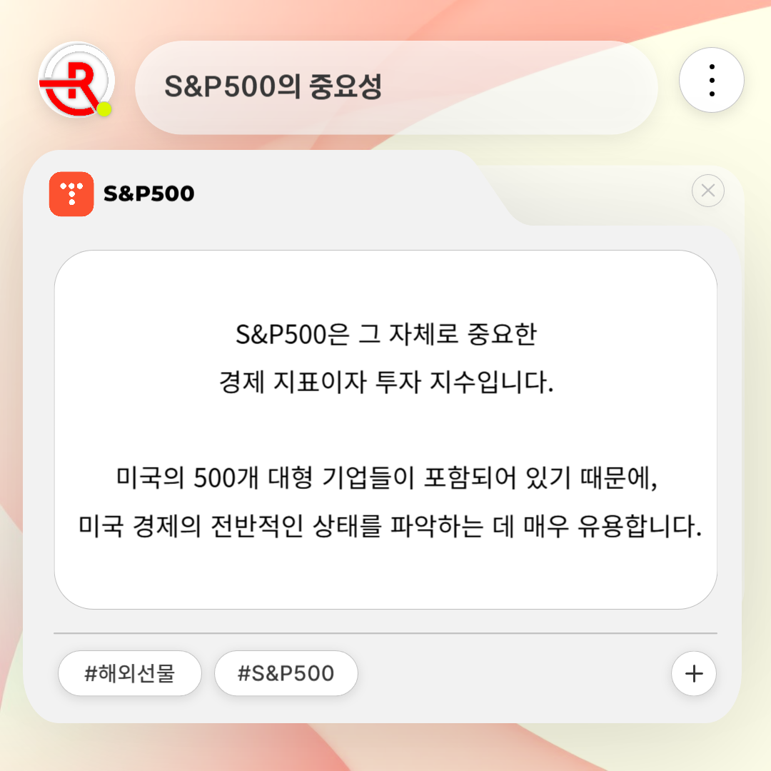 S&P500은 그 자체로 중요한 경제 지표이자 투자 지수입니다. 미국의 500개 대형 기업들이 포함되어 있기 때문에, 미국 경제의 전반적인 상태를 파악하는 데 매우 유용합니다.