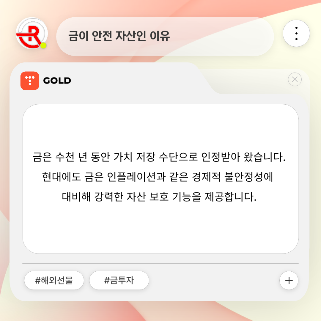 금은 수천 년 동안 가치 저장 수단으로 인정받아 왔습니다. 현대에도 금은 인플레이션과 같은 경제적 불안정성에 대비해 강력한 자산 보호 기능을 제공합니다.
