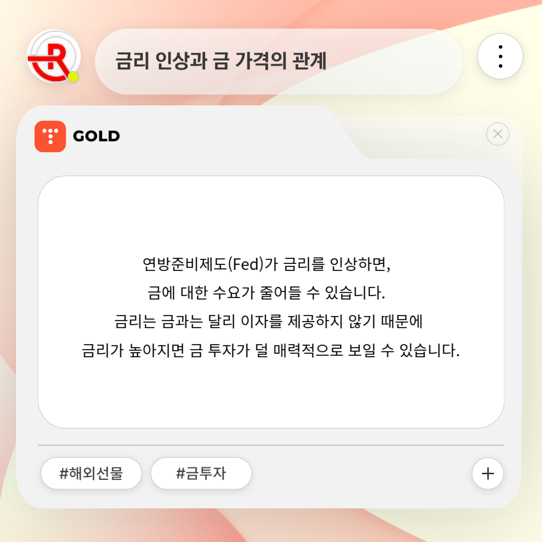 연방준비제도(Fed)가 금리를 인상하면, 금에 대한 수요가 줄어들 수 있습니다. 금리는 금과는 달리 이자를 제공하지 않기 때문에 금리가 높아지면 금 투자가 덜 매력적으로 보일 수 있습니다. 하지만 인플레이션과의 상호작용에서 금은 수요 증가를 유도할 수 있습니다.