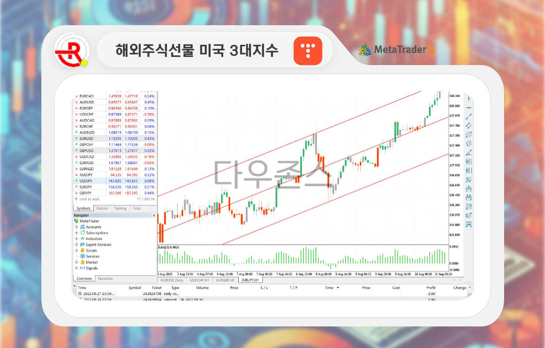 다우존스 산업평균지수(DJIA)는 30개 대형 블루칩 기업으로 구성된 지수로, 안정적인 시장 흐름을 제공합니다.