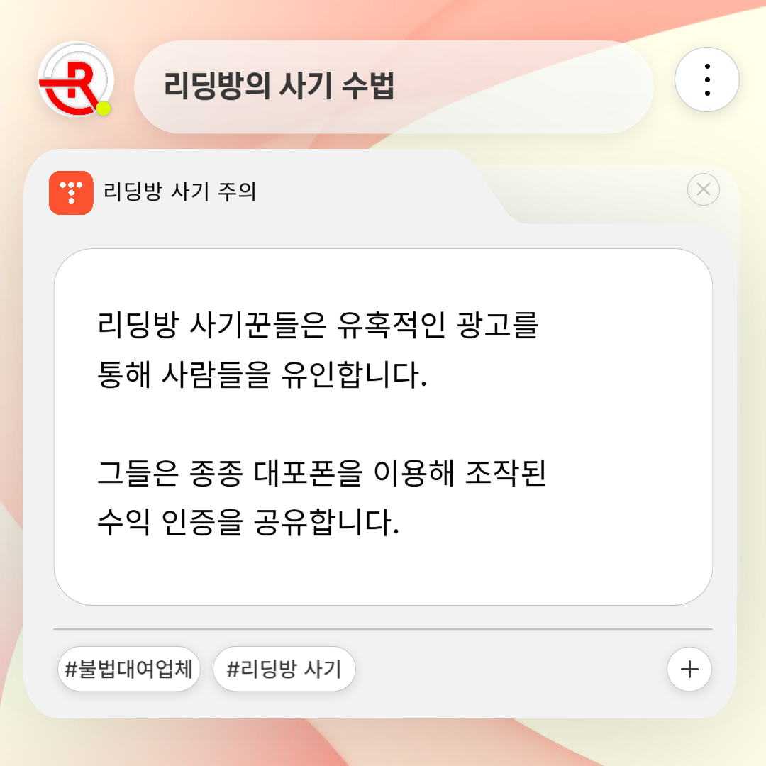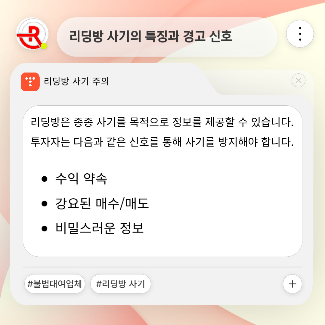 - 비밀스러운 정보: 종종 사기 리딩방에서는 비밀 정보를 공유한다며 회원을 유인합니다.
