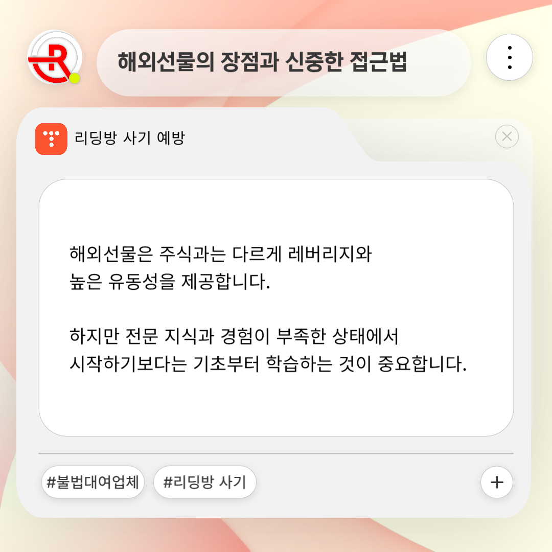 해외선물 투자와 사기 리딩방 예방 가이드 (0) | 2025.01.15 |