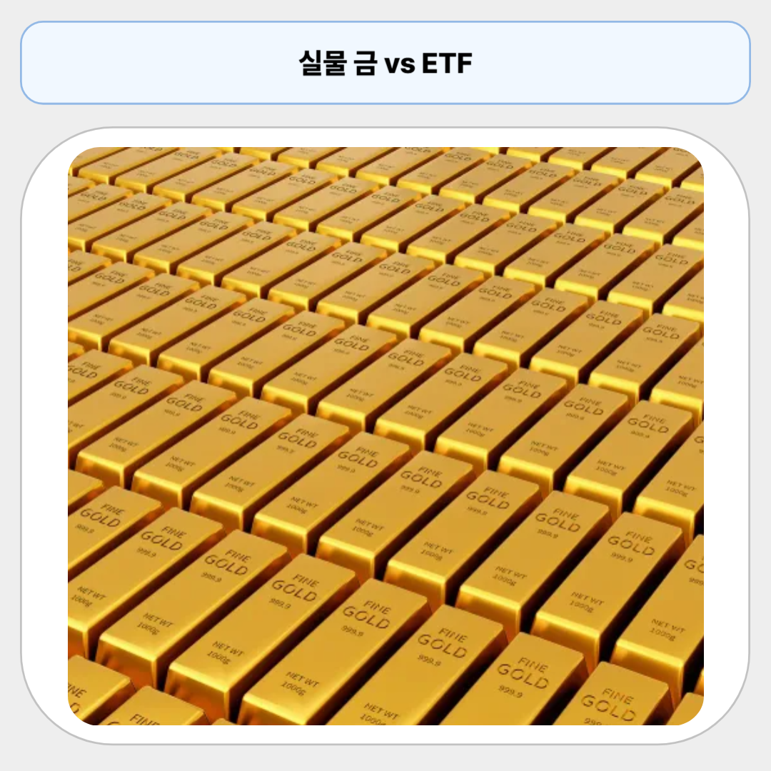 금 투자는 여러 방식으로 진행할 수 있으며, 대표적으로 실물 금 매수와 ETF 투자가 있다.